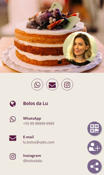 É super prático pois as informações da sua empresa/atividade profissional estarão disponíveis em ícones interativos, tudo em somente um clique: whatsapp, telefones, endereço, email, redes sociais e muito mais!